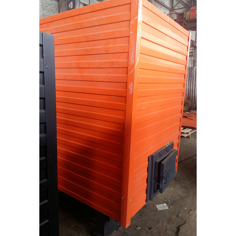 Мощная – 300 кВт (0,3 МВт) – «начинка» котла КВр заключена в окрашенный металлический корпус. Покрытие (краска) защищает от коррозии и механических повреждений. Газоплотные и негазоплотные части котельного блока, чтобы сократить теплопотери, обшиты теплоизоляционным материалом: плитами ПТЭ и войлоком.